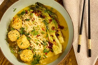 …slowing down with Thai yellow curry ramen soup with chicken meatballs