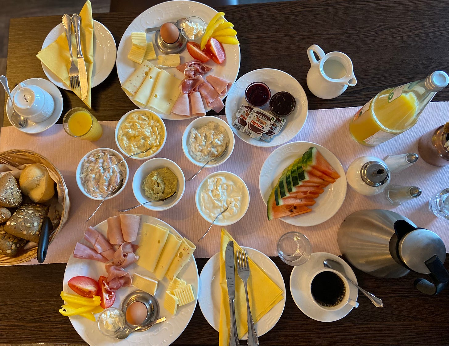 I went on a 250 mile bike ride through Germany with my dad, seeing the country side and staying in Gasthauses along the way. Each morning we would be greeted by the most spectacular breakfasts with platters of sliced meats and cheeses, fresh rolls of every kind, fruits and vegetables, hard cooked eggs in their own little cups, and more jams than you thought possible. And most importantly, my own little pot of coffee at my place setting, just for me. When we came home I immediately started making my own pared down version of these breakfasts.