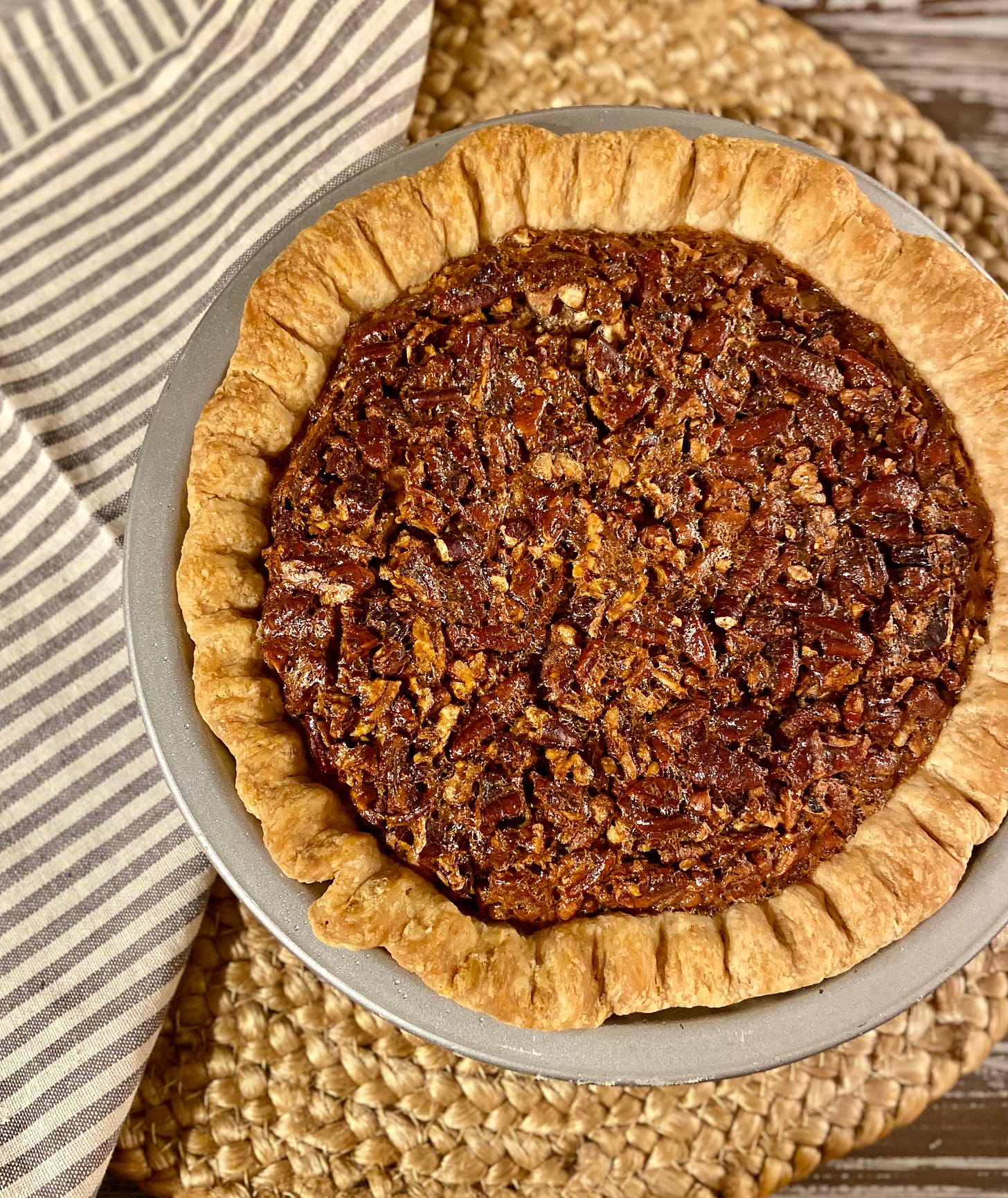 You can make your own crust (I included my all-butter pastry crust recipe), or take it easy on yourself and use store-bought, but the beauty of this pie is that it can be stirred together and in the oven in about 10 minutes. I use chopped pecans because I want to pack more in every bite (and it’s easier to cut than pies with pecan halves), and I stir in a tablespoon of bourbon for that little hint of “what is that? oh that’s good”, but you can totally leave it out if you want to.